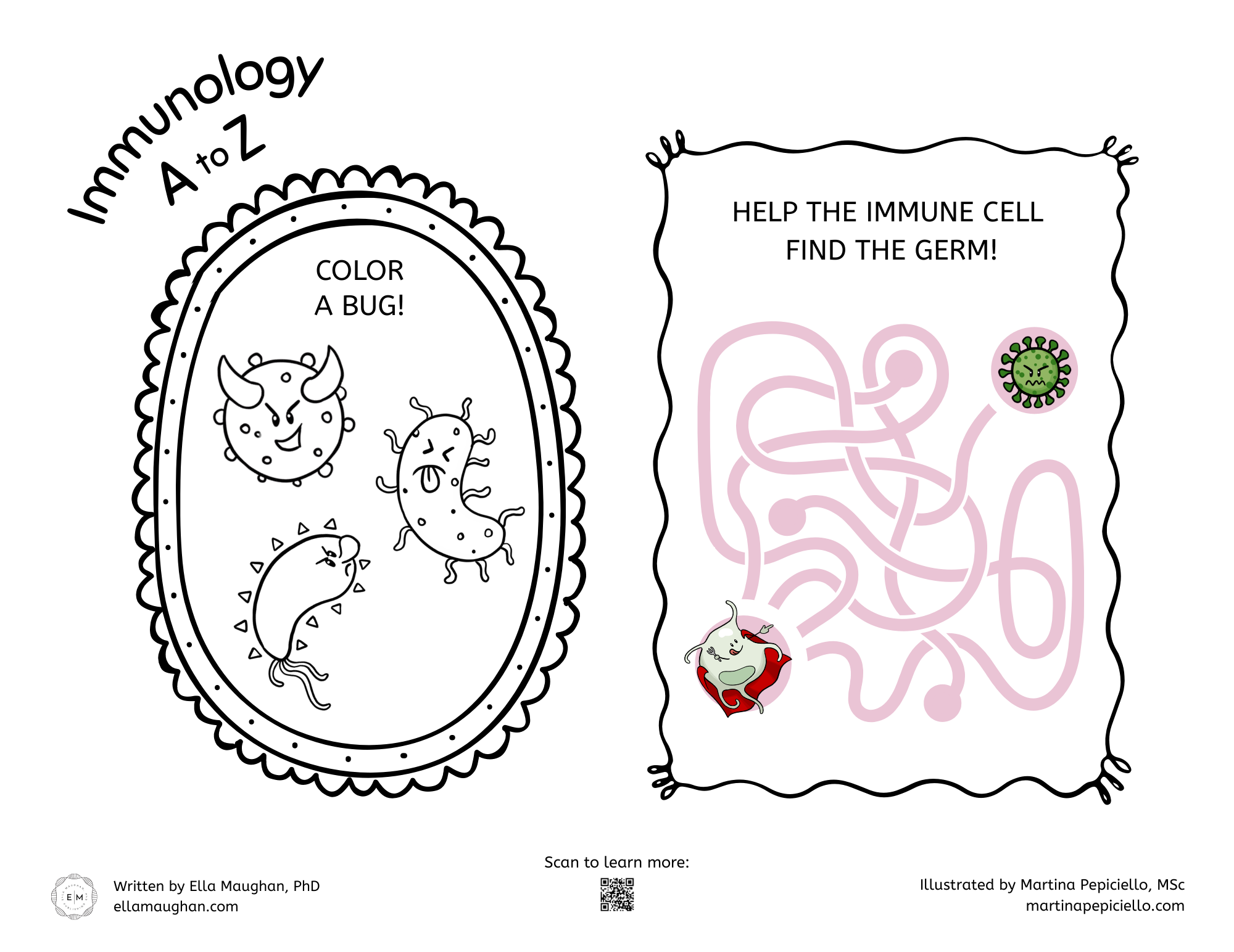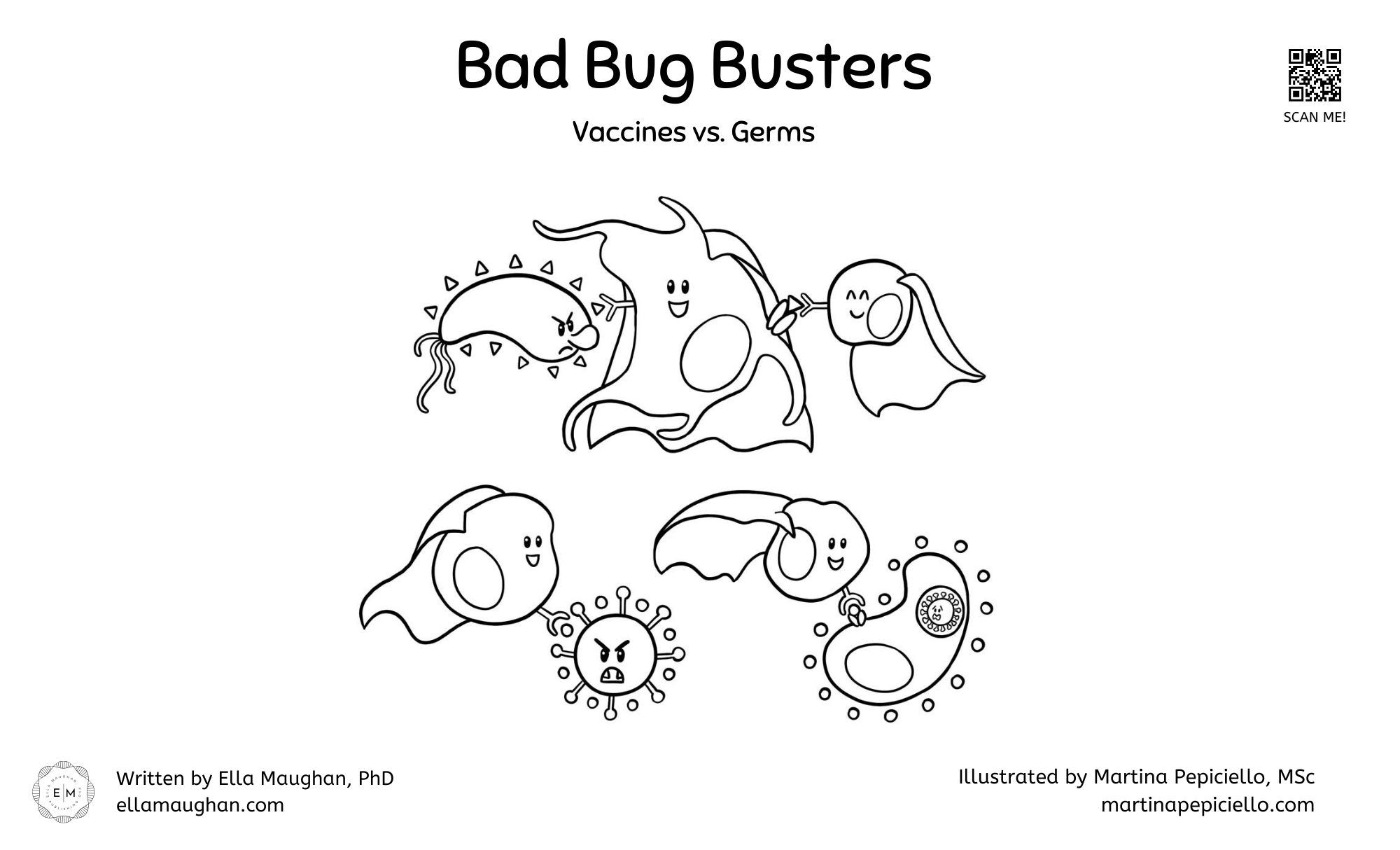 Class visits are tailored to grade level, and include a PowerPoint presentation showing how I transformed from scientist to storyteller and book readings paired with age-appropriate activity sheets and hands-on, classroom-friendly experiments, like glitter germs!